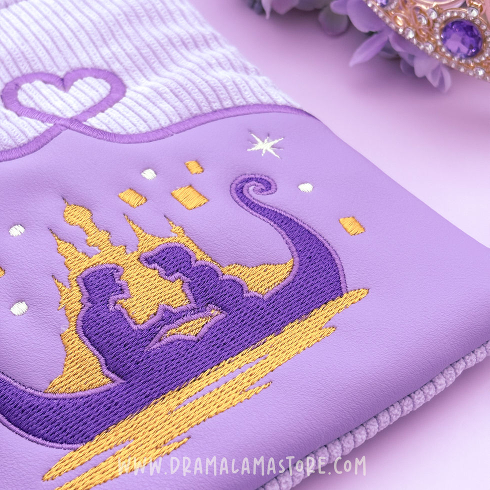 This handcrafted sleeve features a Rapunzel-inspired embroidery on the front – delicate, dreamy and full of storybook charm.